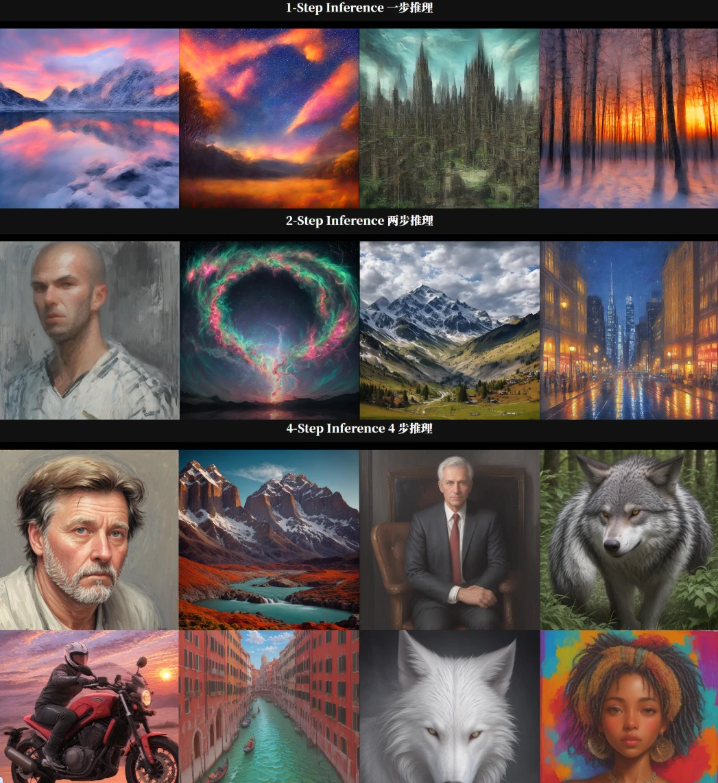 - 极速生成:突破传统扩散模型需几十步生成的限制,实现“一步成图”。