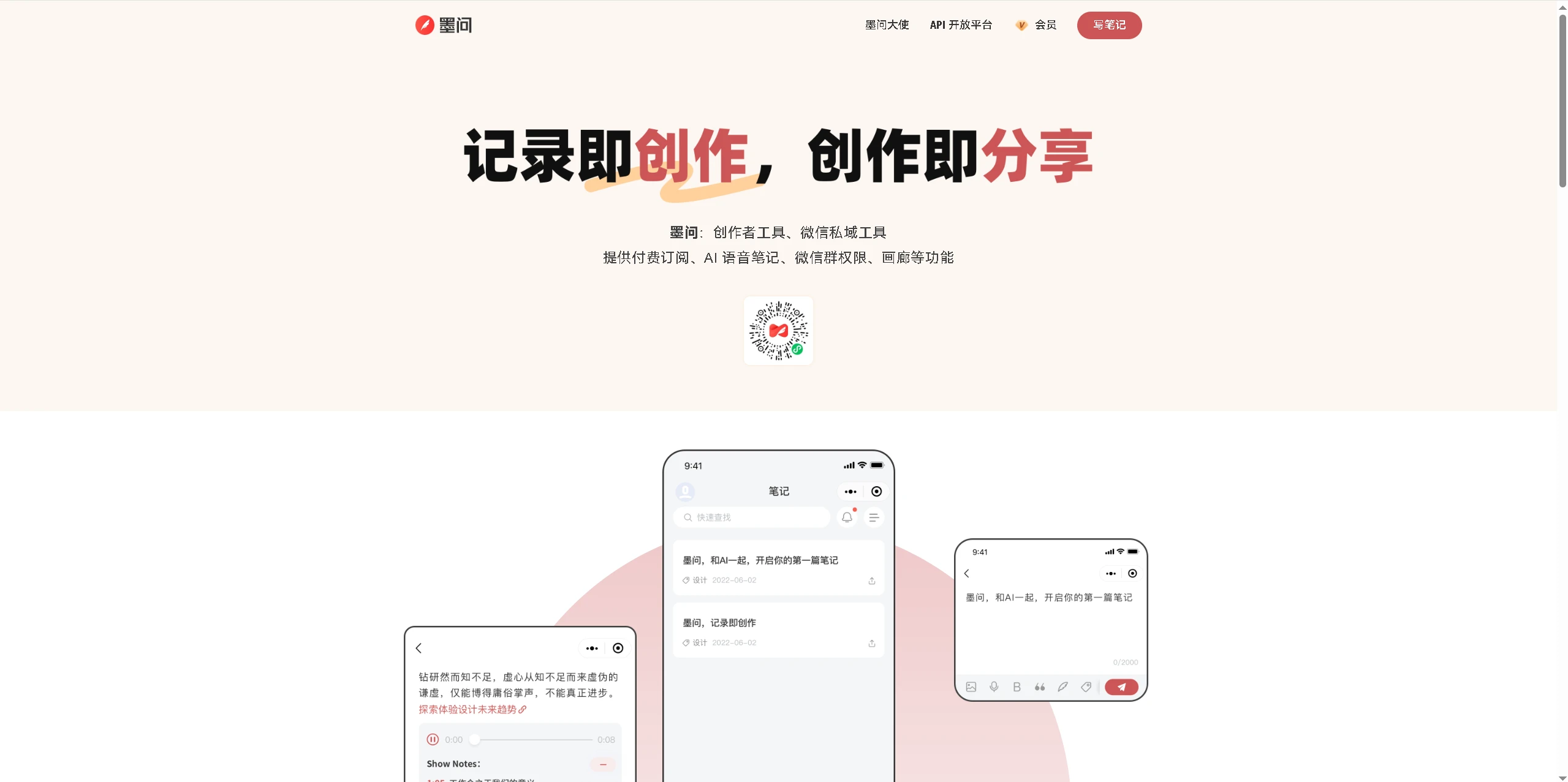 - 多端同步支持:除了Web端,墨问提供微信小程序,支持跨设备无缝切换与实时同步。